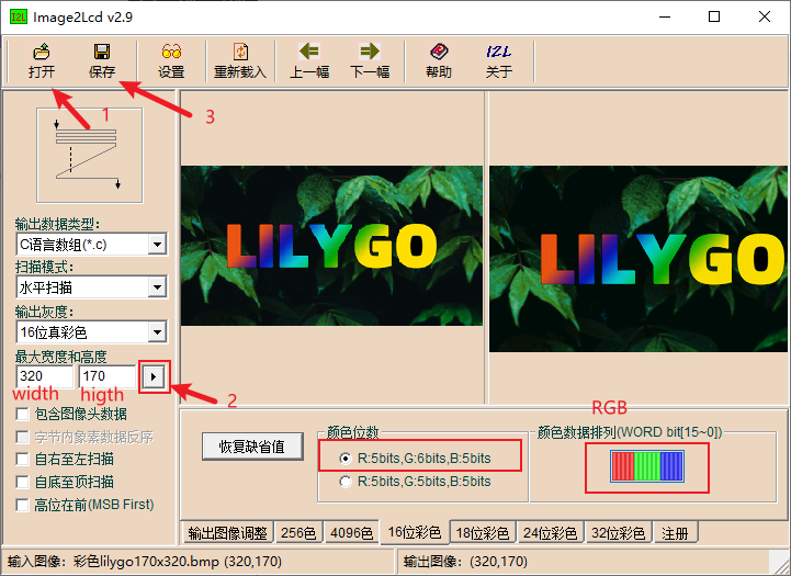 iot-objets-connectes/T-Display-S3-main/tools/Image2Lcd_configuration.png